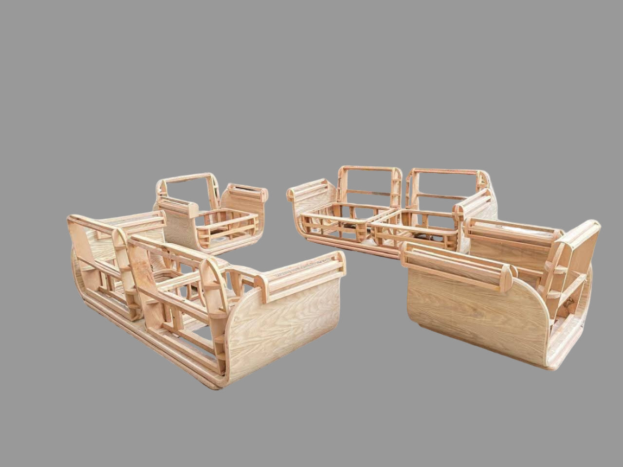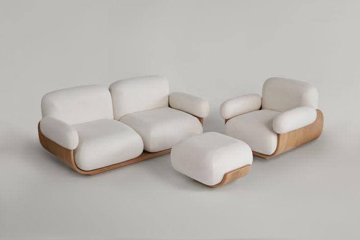 الخامات الأساسية : الهيكل: خشب زان أحمر مجفف مع تقنية الخشب المنحني (Bent Wood). القماش: قماش باندا (متاح تغيير لون ونوع القماش). الاسفنج: كثافة 38.