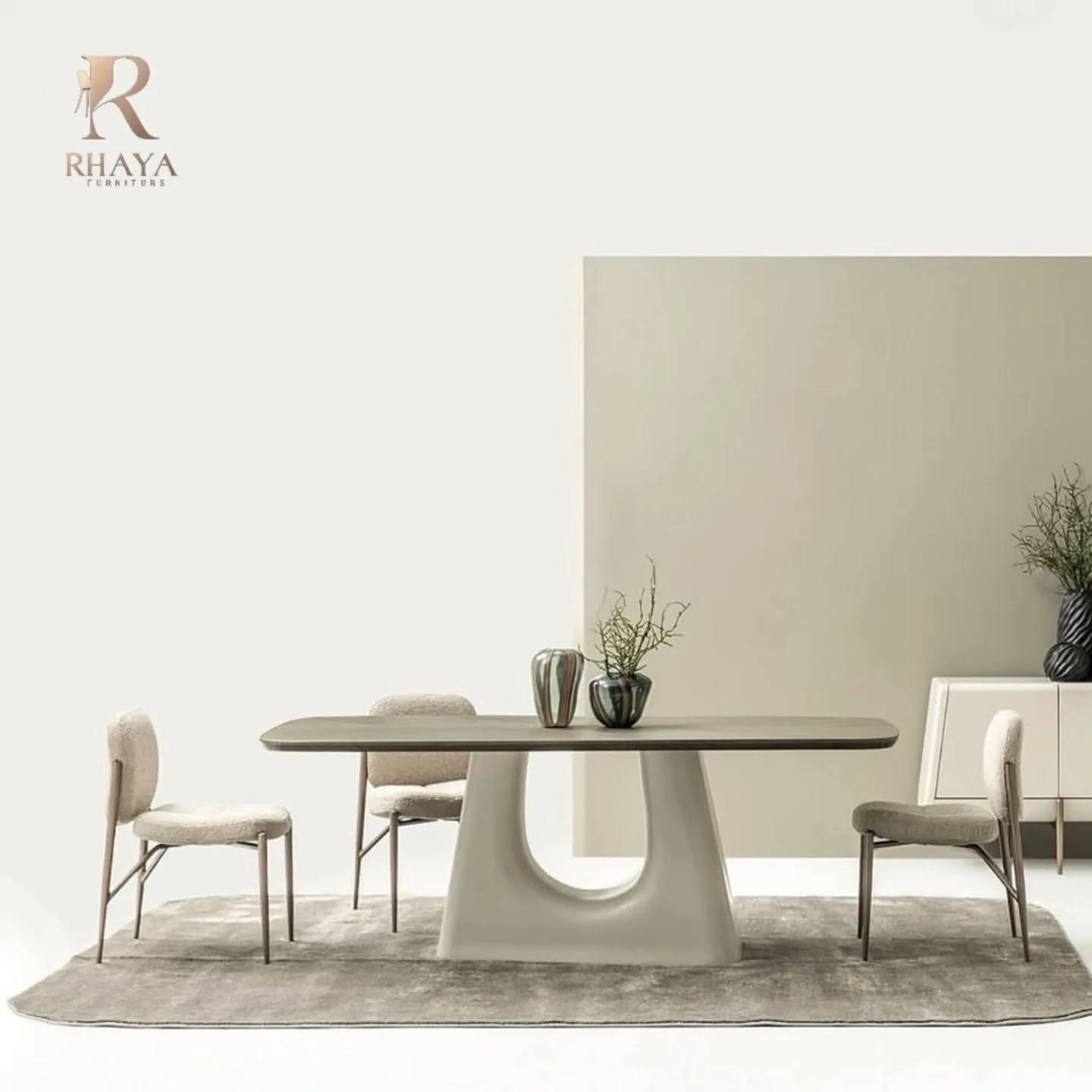 طقم سفرة أرينا - ترابيزة بقاعدة نحتية عصرية وكراسي قماش بوكليه
