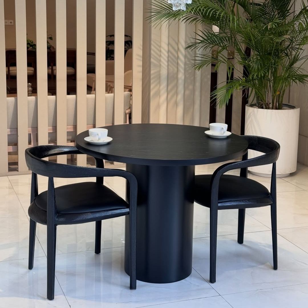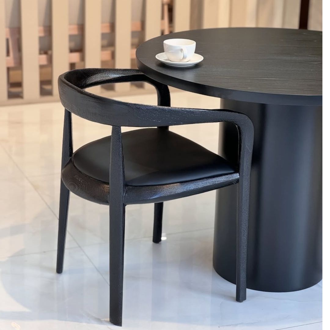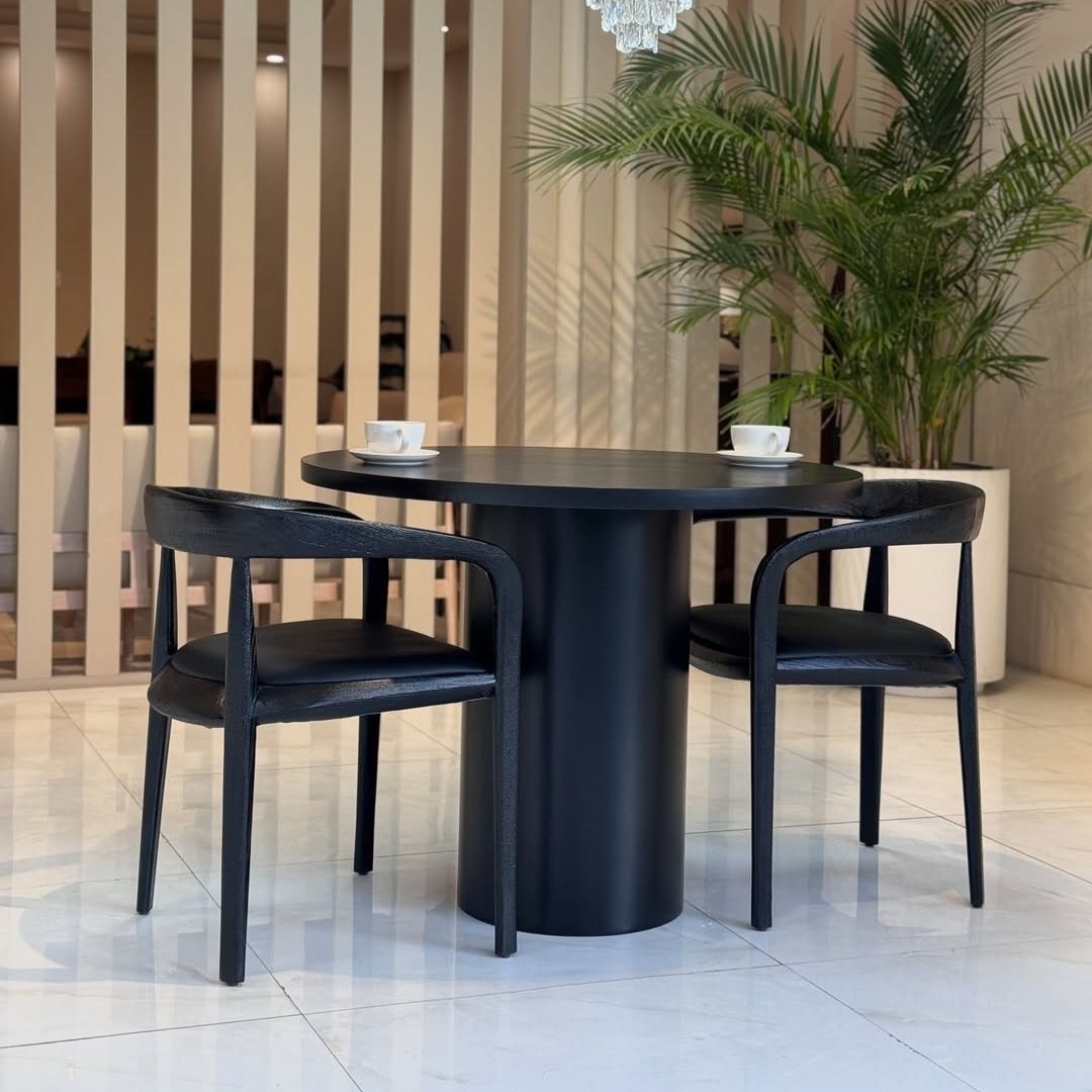 طقم كافيه "مينوس" - 4 كراسي خشب زان أسود وطاولة دائرية بقشرة أرو طبيعي