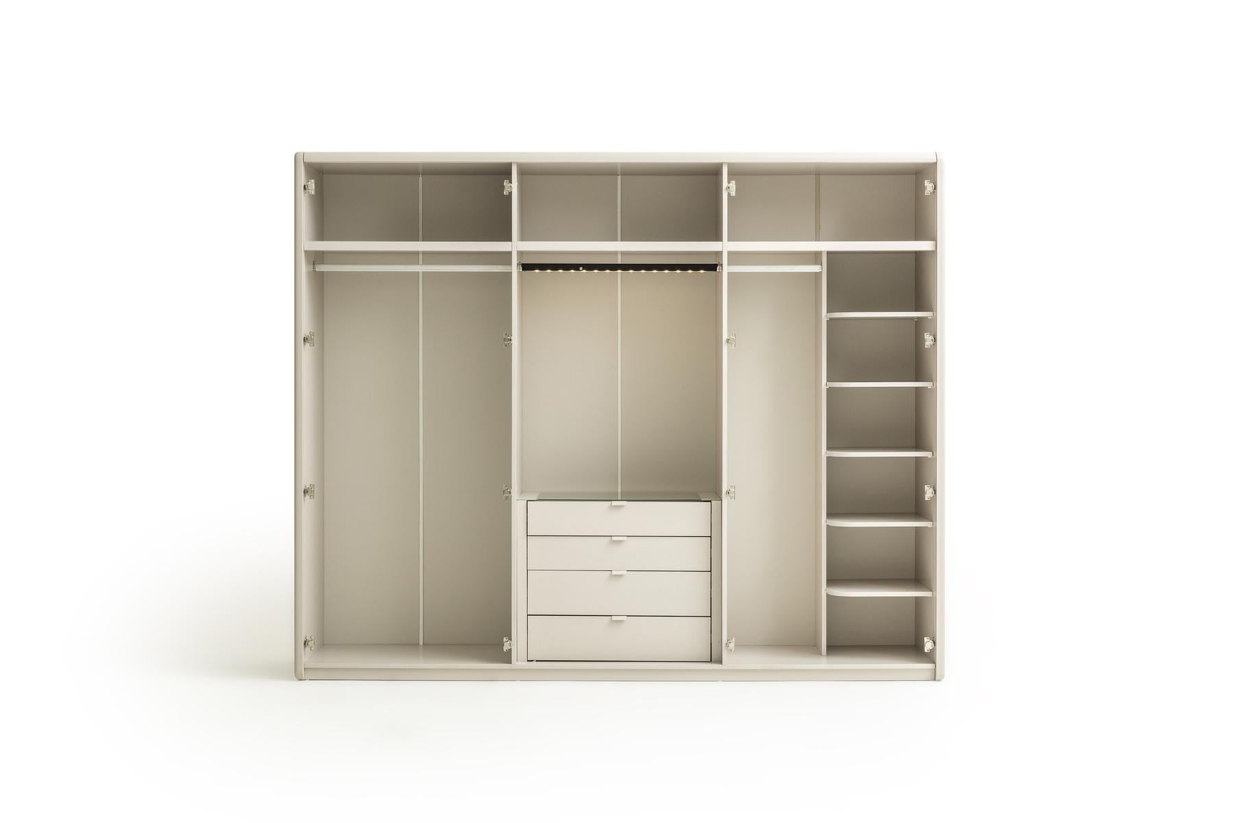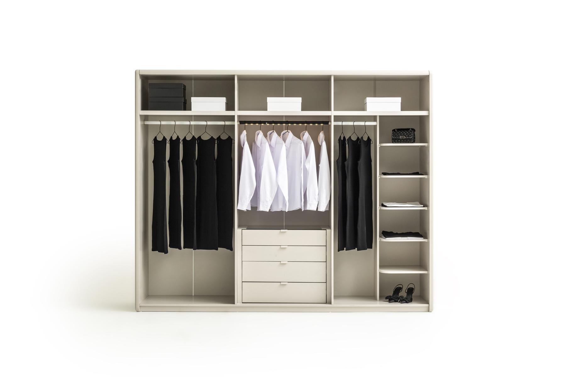 دولاب بتصميم "البوتيك": خزانة ملابس تمتد من الأرض إلى السقف بتصميم مينيماليست يخطف الأنظار. تجمع بين الأبواب المغلقة التي تخفي خلفها مساحة تخزين واسعة، وواجهات زجاجية مضيئة تعرض أجمل ملابسك وإكسسواراتك كأنها في معرض فني، مع نظام إضاءة LED داخلي يضفي جواً من الفخامة.