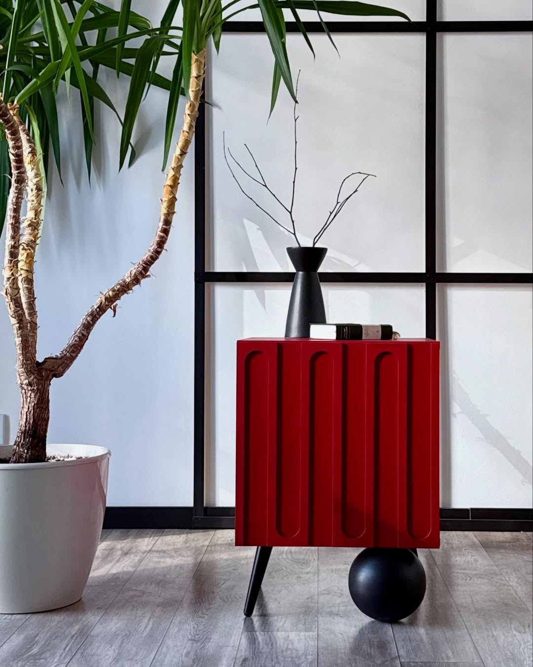 كومود "بومبي" - أحمر ناري وتصميم نحتي CNC